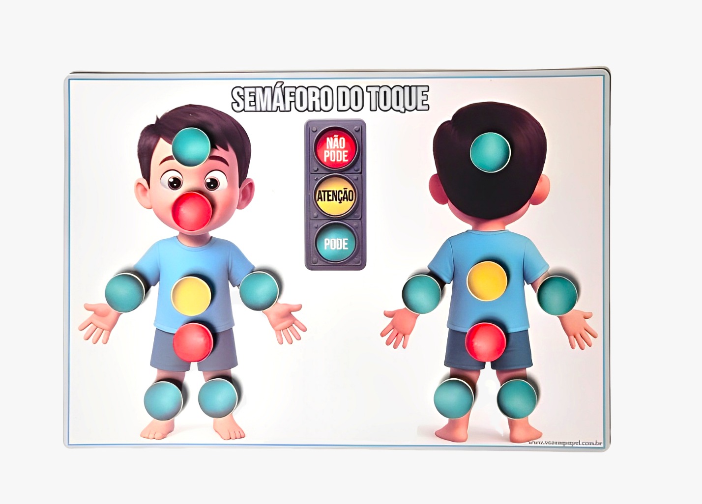 Este material foi elaborado para ajudar as crianças a entenderem quais partes do corpo podem ou não ser tocadas, promovendo o respeito ao próprio corpo como forma de defesa e autopreservação.