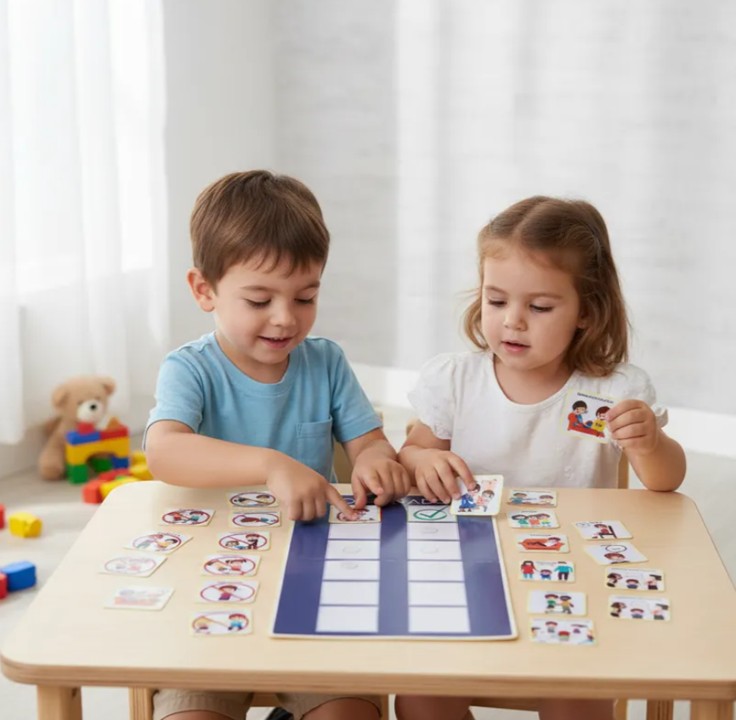 Os combinados possibilitam melhor compreensão e adesão por parte da criança, pois proporcionam previsibilidade sobre o que é possível ou não em determinado ambiente. O suporte visual funciona como um aliado para o cumprimento de tais combinados, já que auxiliam a criança a lembrar sobre o que foi apresentado previamente. É interessante montar os combinados junto à criança, para dar explicações sobre o que está sendo colocado.