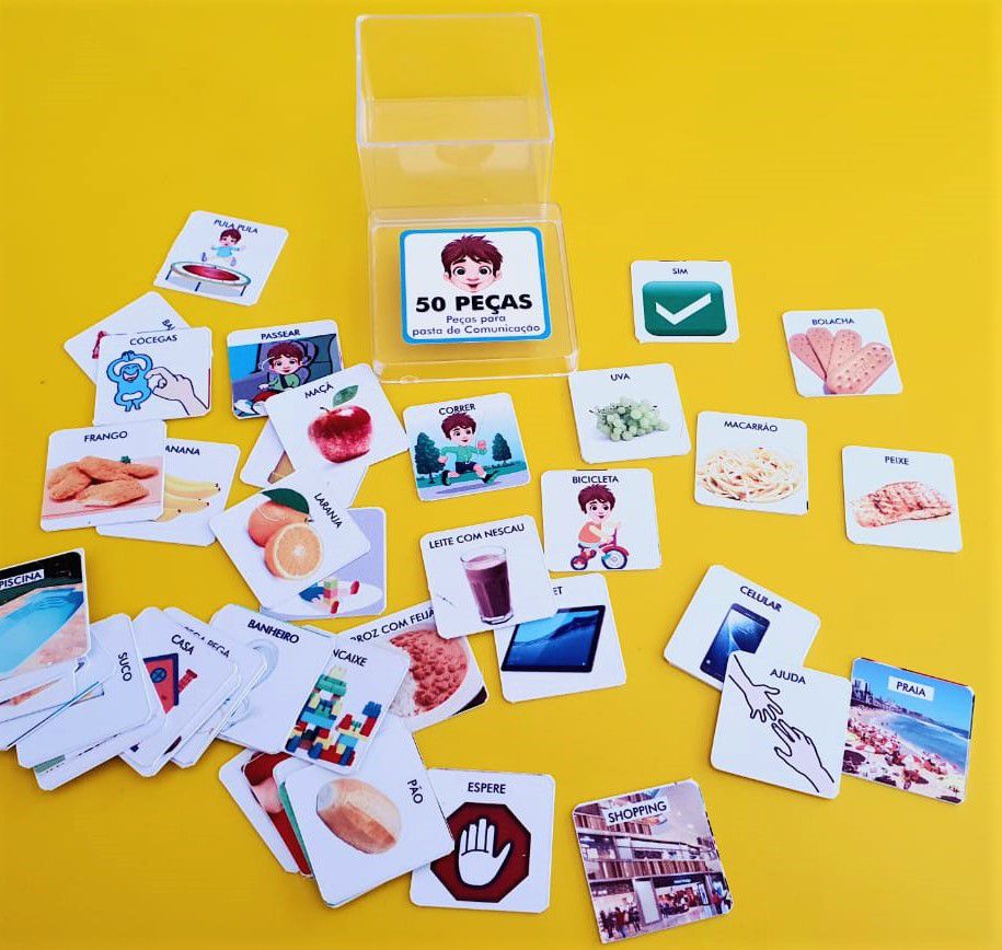 50 fichas, tamanho 3,5 x 3,5, cm para pasta de comunicação alternativa e aumentativa, confeccionado em PVC de alta qualidade.